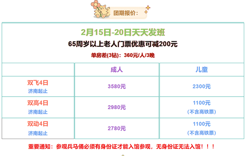 【春节特供】惠游长安年•西安、兵马俑、华清池、大慈恩寺·山东成团•送千古情演出.2026年时间:2026-01-27
